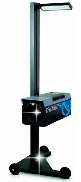 Главным элементом прибора является оптический блок, установленный на неподвижной сдвоенной вертикальной стойке, закрепленной на устойчивом основании с тремя прорезиненными колесами.Внутри оптического блока находится: