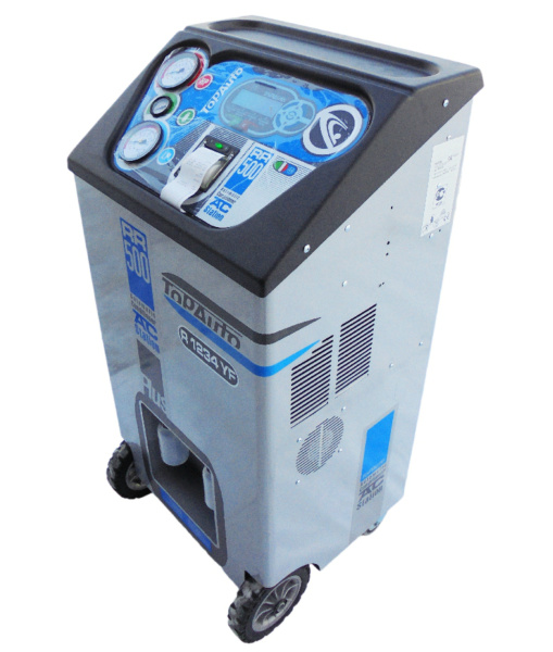 Станция сервисная автоматическая TopAuto RR500-134PlusPR_demo предназначена для обслуживания автомобильных систем кондиционирования с фреоном R-1234yf. Функции: откачивание и очистка хладагента из системы, отделение и последующий сброс масла, вакуумирование системы, автоматическая заправка фреона и масла, встроенный принтер.
