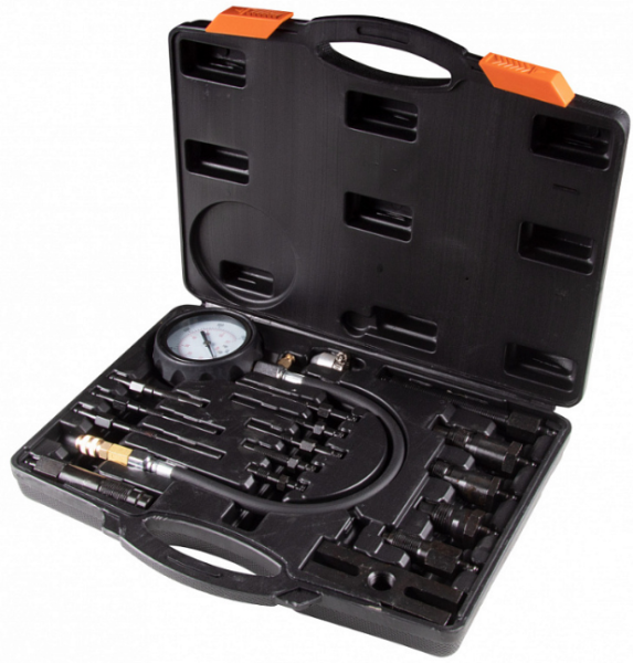 Компрессометр дизельный с комплеком адаптеров AFFIX AF12011017C в пластиковом кейсе из 17 предметов, используется для измерения компрессии в цилиндрах дизельных двигателей грузовых и легковых автомобилей, сельскохозяйственной, строительной и другой техники.