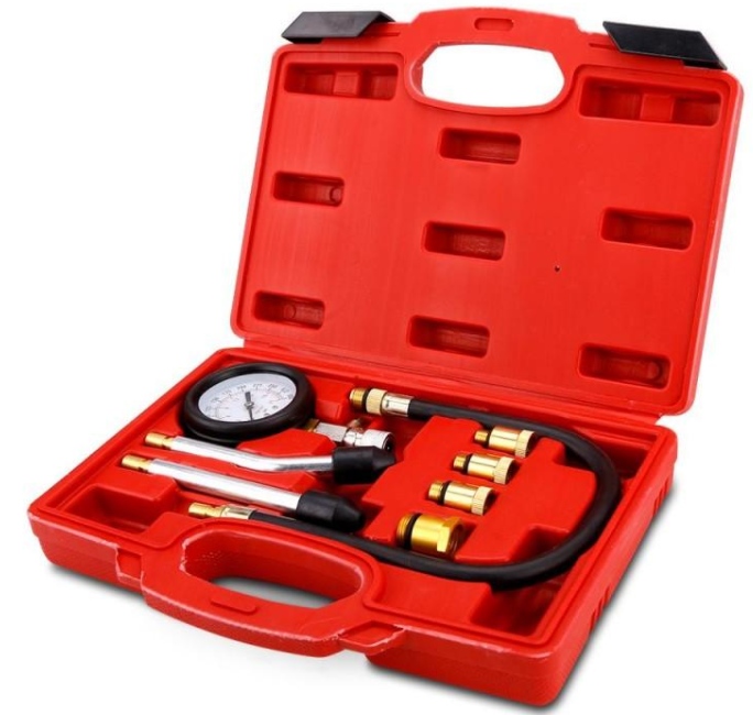Индикатор компрессии бензинового двигателя Profi Forsage F-908G1 в пластиковом кейсе из 8 предметов (0-21Bar, М10, М12, М14, М18 + 2 жестких прижимных адаптера-переходника) , предназначен для тестирования компрессии бензиновых двигателей.