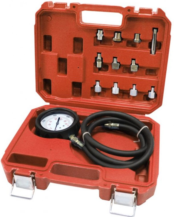 Тестер давления масла Forsage F-912G02(F-910G1) в комплекте с резьбовыми адаптерами переходниками в пластиковом кейсе из 12 предметов предназначен для проведения работ по диагностике давления масла в любом типе автомобилей.