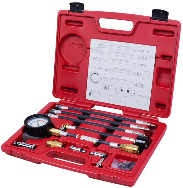 Компрессометр бензиновый Мастак 120-10019C в пластиковом кейсе из 19 предметов предназначен для проверки компрессии в цилиндрах бензиновых двигателей.