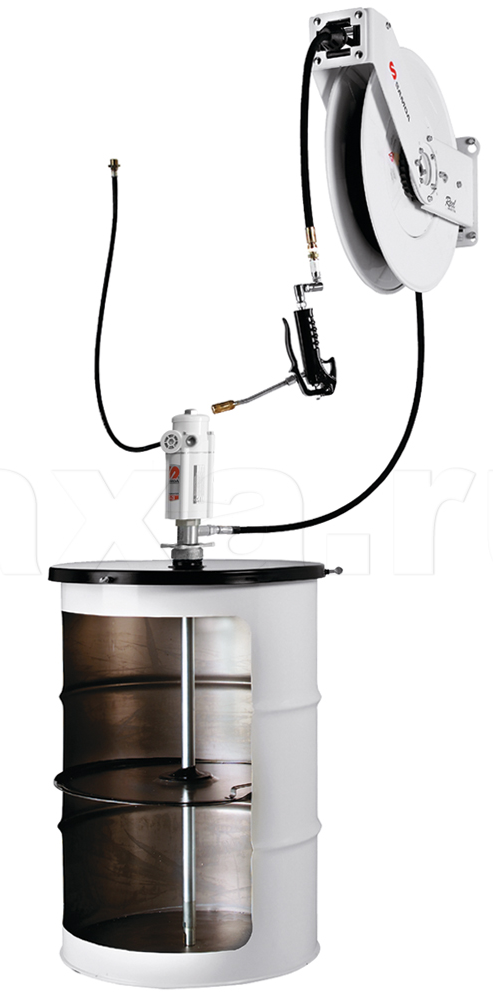 Комплект для раздачи консистентной смазки Samoa 453612 с насосом PM35 и катушкой для бочек 185 кг.