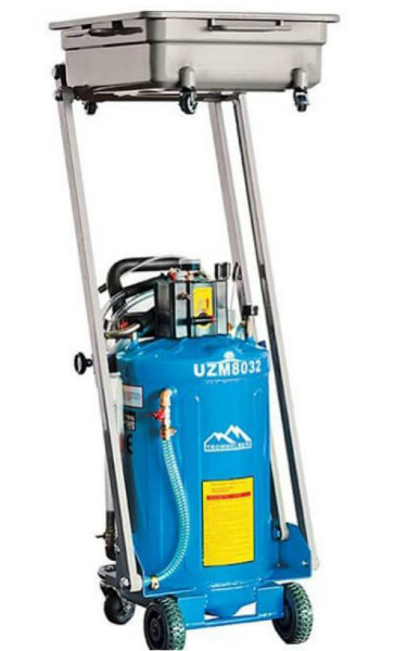 Мобильная пневматическая установка Trommelberg UZM8032 для сбора отработанного масла путем слива в подъемную ванну или удаления через маслосборные щупы.