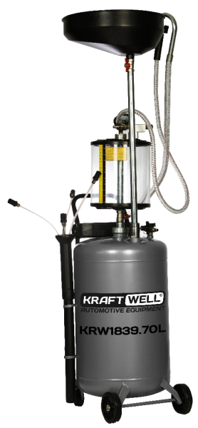 Установка KraftWell KRW1839.70L предназначена для сбора масла, антифриза и других технических жидкостей методом слива самотеком, а также откачкой через щупы.