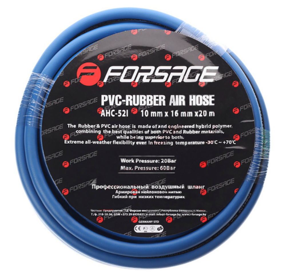 Шланг резиновый воздушный армированный Forsage F-AHC-52F предназначен для подключения сжатого воздуха к пневмоинструменту и оборудованию.