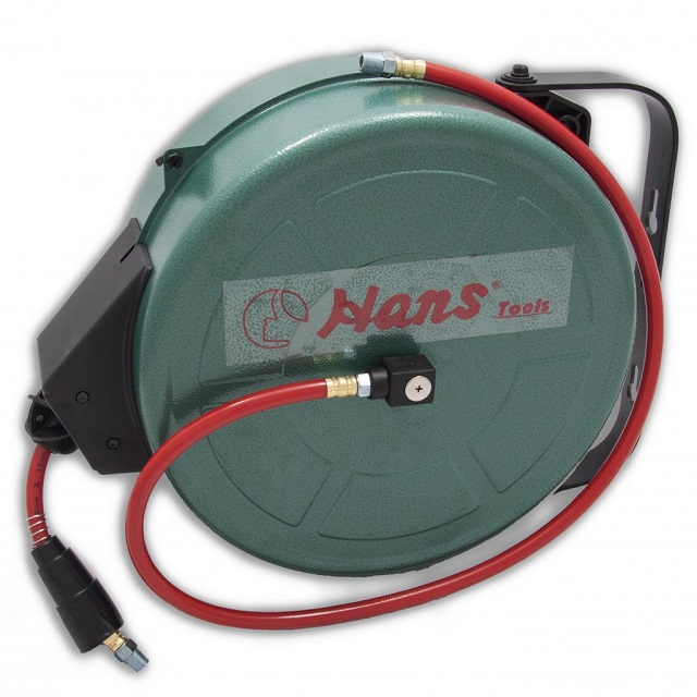 Полиуретановый армированный шланг 8606-8020 Hans на самоскручивающейся в закрытой металлической катушке с резобовыми соединениями (1/4М)