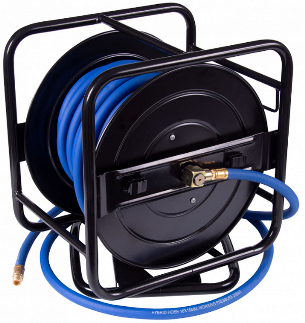 Шланг пневматический на открытой катушке закрытого типа Мастак 684-10120HR используется для проведение сжатого воздуха к пневматическому инструменту, подключение пневматического оборудования, а также проведение воздушных магистралей к рабочему месту.