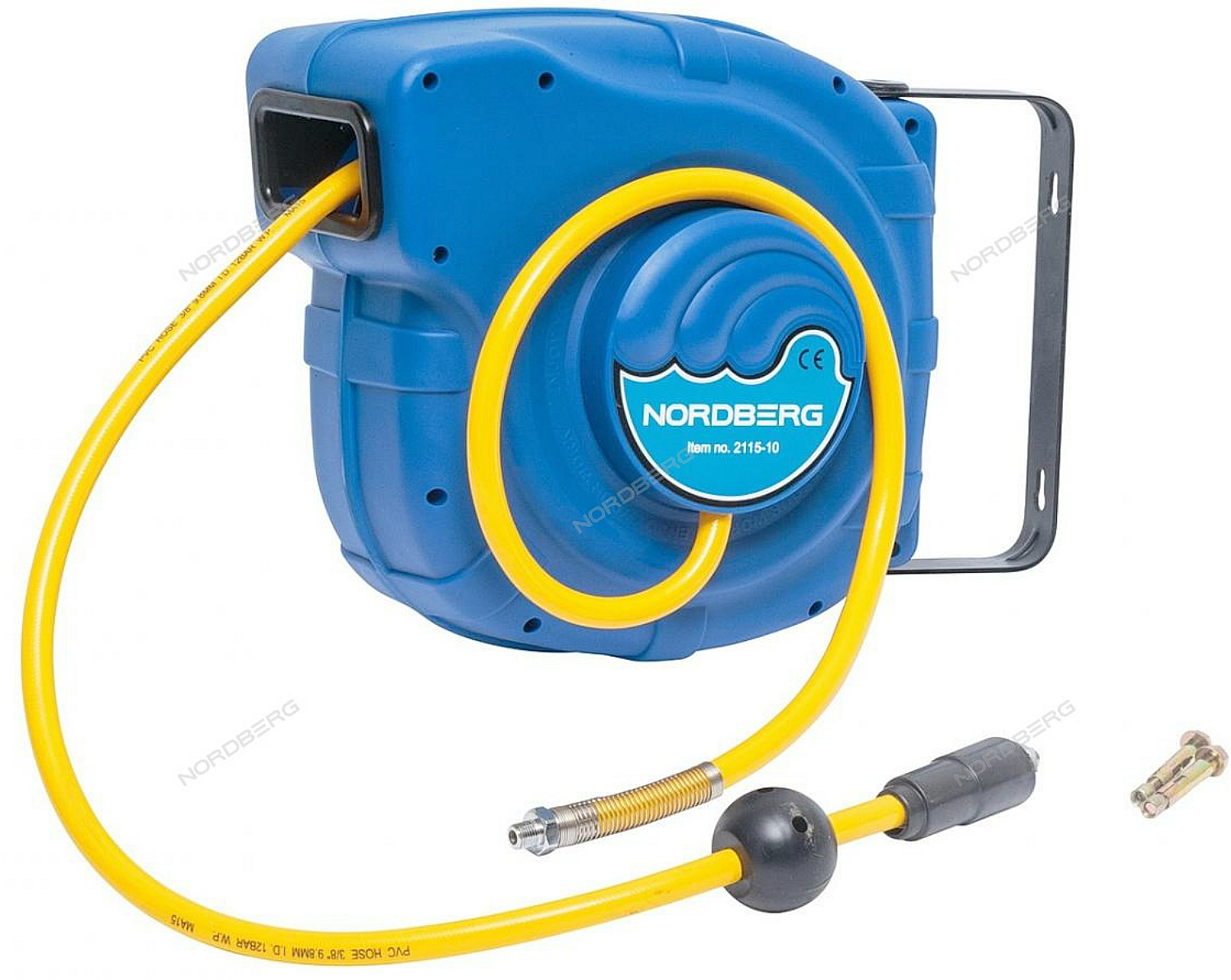Шланг армированный гибридный ПВХ на автоматической катушке Nordberg 2115-10 предназначен для подачи воздуха от компрессора к пневматическому инструменту.