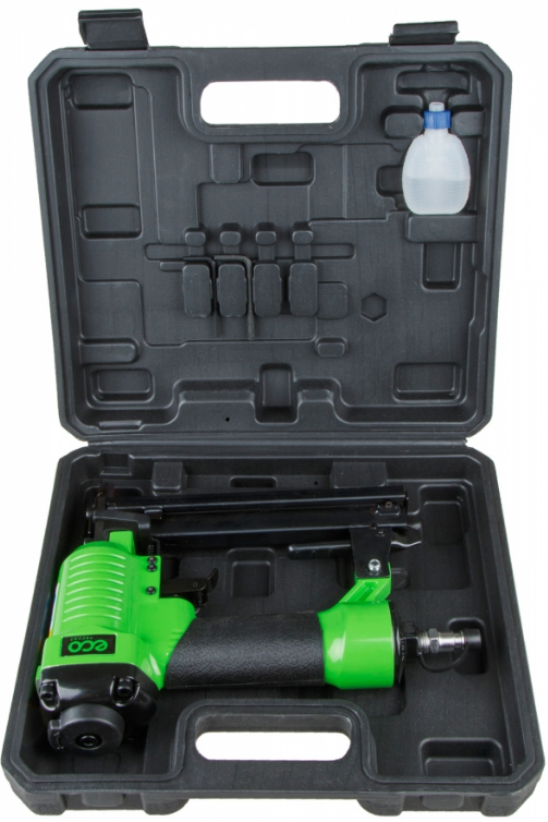 Пневматический степлер в пластиковом кейсе ECO ASL-40B используется для соединения различных поверхностей (дерево, металл, пластик, гофрокартон и т.п.)