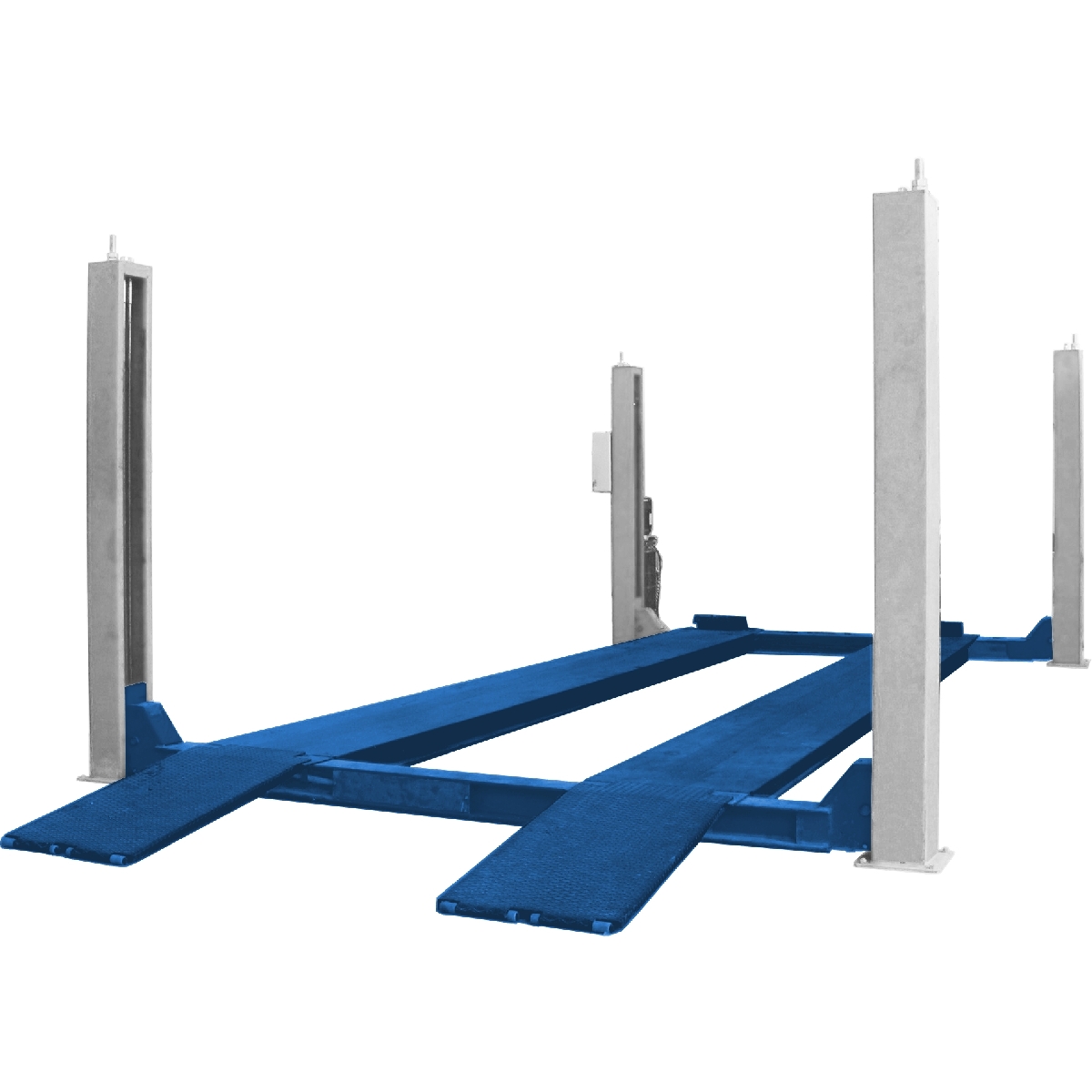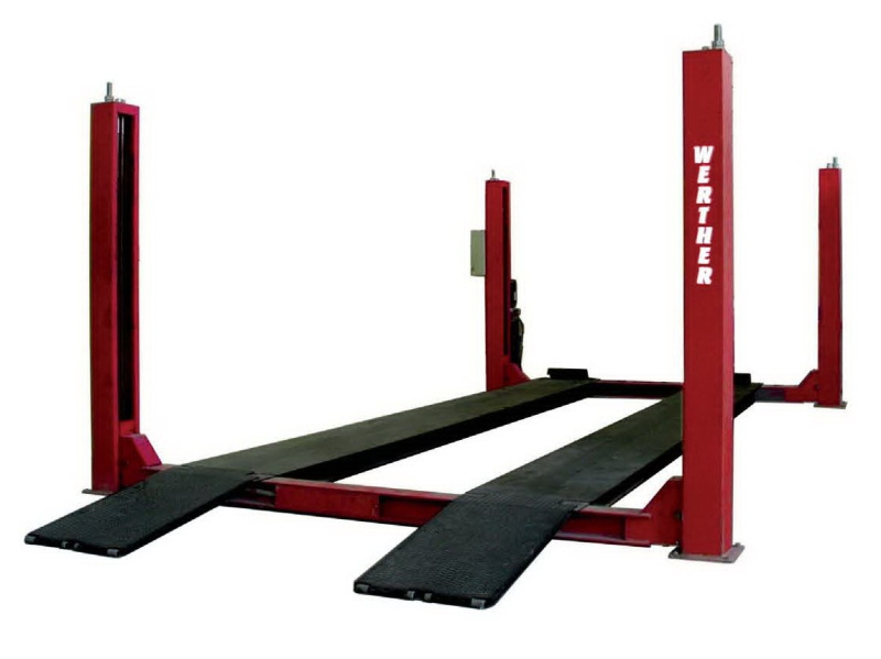 Подъемник четырехстоечный электрогидравлический OMA 528 с электромеханическим устройством остановки в случае разрыва тросов и аварийным клапаном опускания.