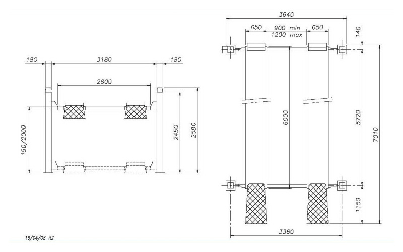 • Габаритные размеры подъемника ДхШхВ 7100х3640х2580 мм.