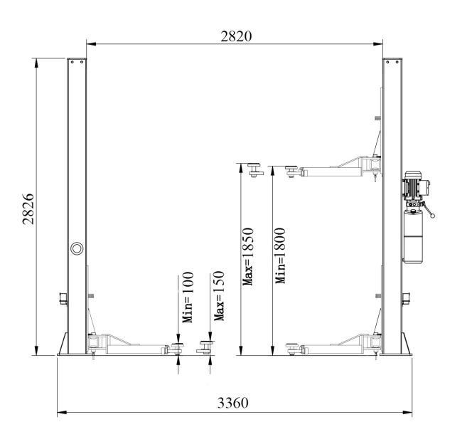Габаритные размеры подъемника ВхШ 2826х3360 мм