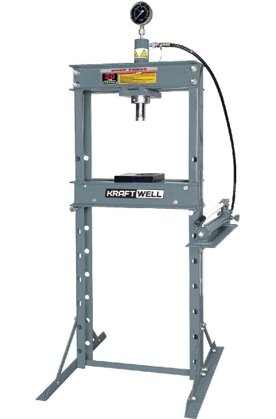 Пресс гидравлический KraftWell KRWPR20 с ручным приводом и манометром применяется в автосервисах и осуществляет широкий ряд ремонтных операций: запрессовку и выпрессовку разного рода автомобильных деталей.