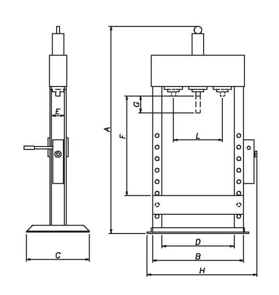 Пресс гидравлический OMA-656B с автоматическим возвратом штока и дополнительной возможностью установки ножной педали, применяется в гаражах, станциях технического обслуживания и на производствах.
