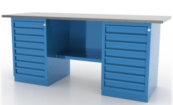 Металлический слесарный верстак с двумя тумбами Ferrum 01.288L-5015 серии Classic L применяется для организации рабочих мест