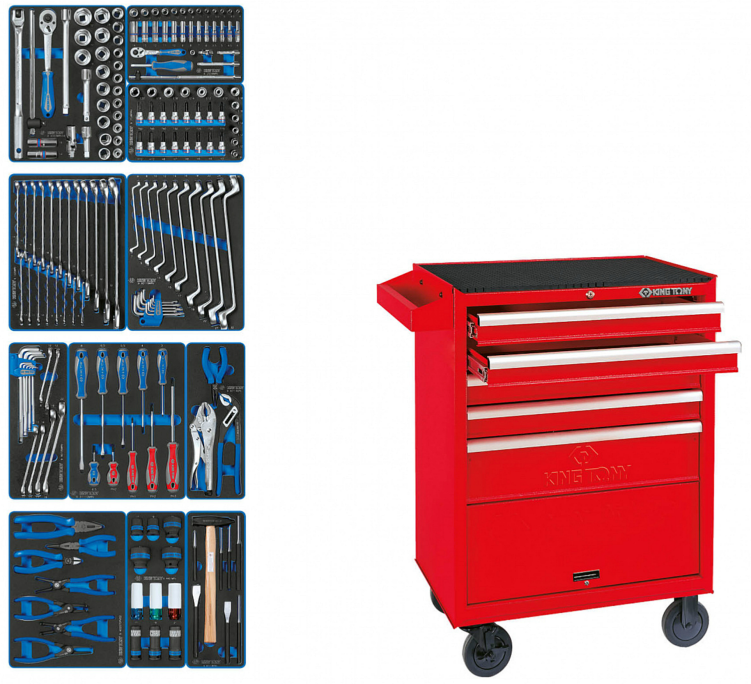 Набор инструментов в тележке King Tony 934-188MRV из 11 ложементов (188 предмета) предназначена для организации рабочего места в любом производственном помещении, станции технического обслуживания или авторемонтной мастерской.