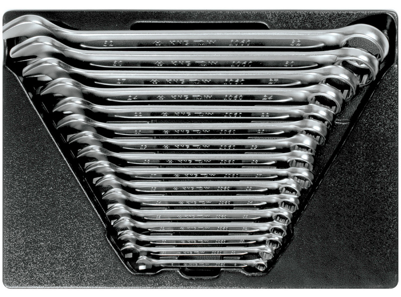 Набор комбинированных ключей King Tony 9-1216MR03 в ложементе из материала PVH (поливинилхлорида) из 16 предметов, предназначен для комплектации передвижных инструментальных тележек или слесарных верстаков.