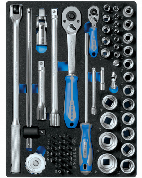 Набор торцевых головок King Tony 9-7560MRV01 в ложементе EVA (ЭВА, полимер на основе этилена и винилацетата) из 60 предметов, предназначен для комплектации инструментальных тележек.