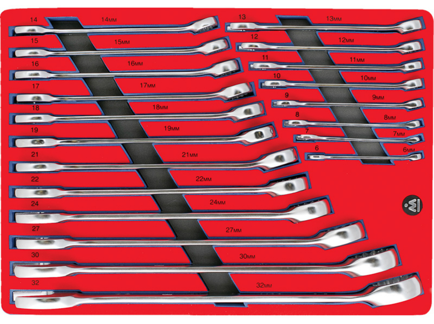 - Ключи комбинированные 6, 7, 8, 9, 10, 11, 12, 13, 14, 15, 16, 17, 18, 19, 21, 22, 24, 27, 30, 32 мм.