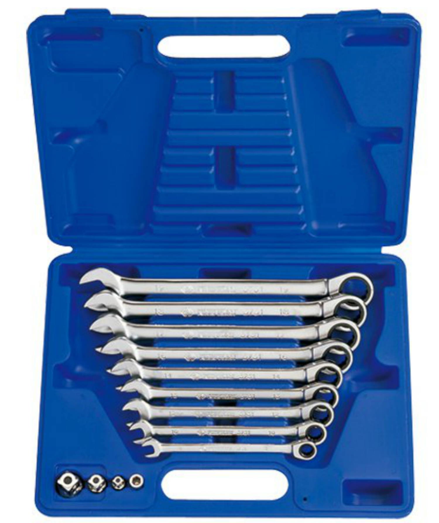 - Ключи трещоточные комбинированные 8 , 10 , 12 , 13 , 14 , 16 , 17 , 18 , 19 мм.