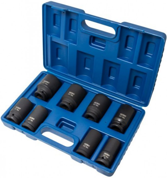 Набор головок ударных глубоких Forcekraft FK-6081-5MPB (артикул 28166) в пластиковом кейсе из 8 предметов, испорльзуется для ремонта грузовых автомобилей.