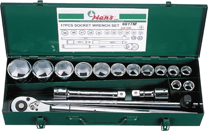 Набор торцевых шестигранных головок Hans 6617M в металлическом кейсе из 17 предметов, предназначен для ремонта грузовых автомобилей на станциях СТО и автоматерских.