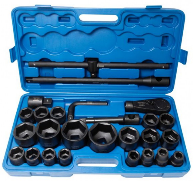 Набор торцевых ударных торцевых головок Rock FORCE RF-68262-5MPB (артикул 28189) в пластиковом кейсе из 26 предметов используется для ремонта грузовых автомобилей.