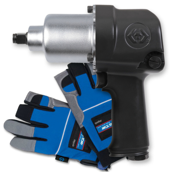 Надежный пневматический ударный гайковерт King Tony 33411-040E в комплекте перчатки антивибрационные, предназначен для работ с резьбовым крепежом в автосервисе, в шиномонтажных мастерских, на сборочных участках и производстве.