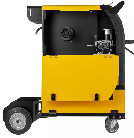 4-х роликовый металлический механизм подачи проволоки. Используется сварочная проволока диаметром от 0,8 до 1,2 мм. Возможно установить катушку с проволокой весом до 18 кг (D300) и регулировать скорость подачи проволоки от 3 до 16 м/мин.