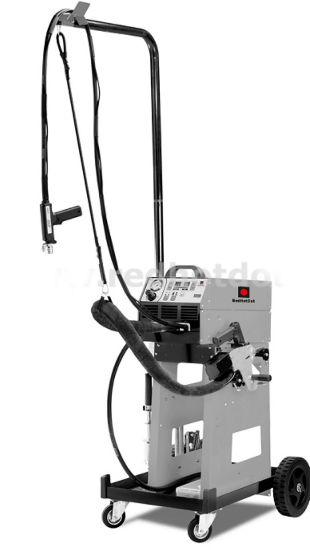 Комплектация: генератор сварочного тока, арт. 276616 / силовой кабель + клещи + плечи "Х" / пистолет односторонней сварки с обратным молотком и набором аксессуаров / тележка / кронштейн с подвесом для кабеля.