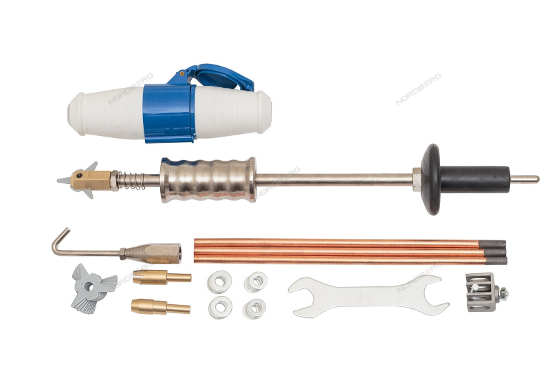 В комплектации: Споттер, тележка на маневренных колесиках и удобными ручками с двух сторон, сокращенный начальный комплект расходника, угольные электроды, сварочный пистолет, обратный молоток к сварочному пистолету.