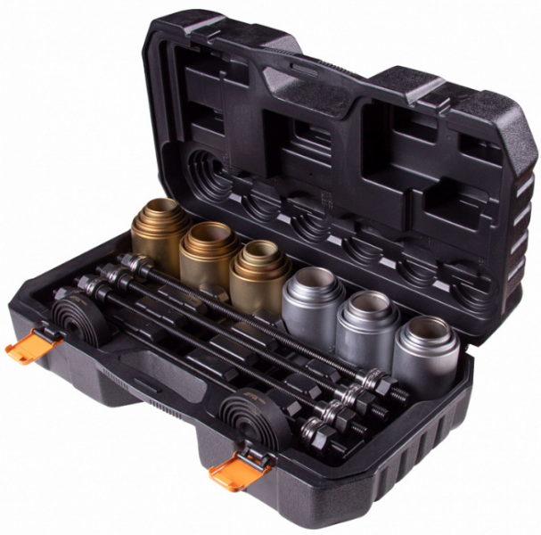 Набор оправок для монтажа и демонтажа сайлентблоков AFFIX AF11020026C в пластиковом кейсе из 26 предметов, используется для внутренних и внешних обойм подшипников и сайлентблоков.