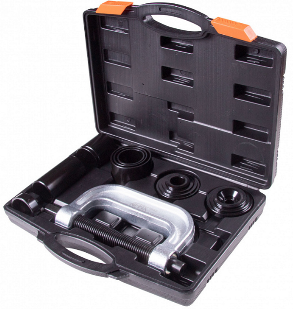 Набор оправок для монтажа и демонтажа сайлентблоков AFFIX AF11020010C в пластиковом кейсе из 10 предметов, используется для снятия или установки множества типов сайлентблоков рычагов, стабилизаторов поперечной устойчивости, реактивных тягах, крепления амортизаторов и т.д.