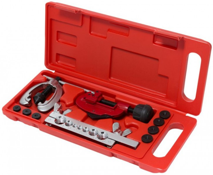 Набор для развальцовки трубок Partner PA-656M (артикул 19146) в пластиковом кейсе из 10 предметов (5, 6, 8, 10, 12, 14,16 мм) предназначен для односторонней и двусторонней (двойным конусом) развальцовки медных, алюминиевых и других мягких металлических трубок.