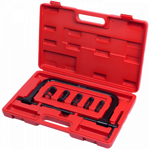 Рассухариватель клапанов универсальный Мастак 103-10006C в кейсе из 7 предметов, предназначен для сжатие клапанной пружины и её фиксация на много клапанных бензиновых и дизельных двигателях.