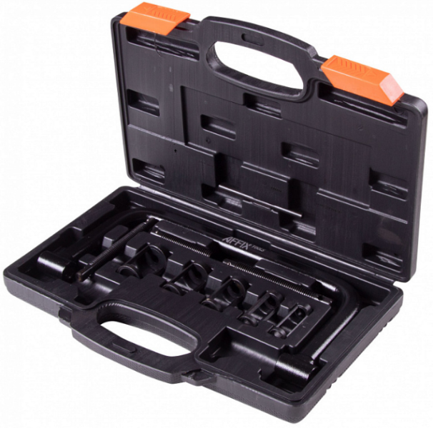 Рассухариватель клапанов универсальный, струбцинный AFFIX AF10310006C в пластиковом кейсе из 10 предметов, используется для сжатия пружин впускных и выпускных клапанов (рассухаривание)