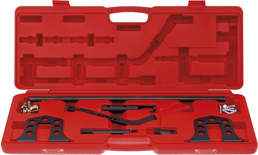 Набор включает в себя всё необходимое для снятия стопорных сухарей клапанов, а так же для снятия и установки клапанных пружин. Подходит для ГБЦ двигателей системы OHV, OHC, SOHC и DOHC (twincam).