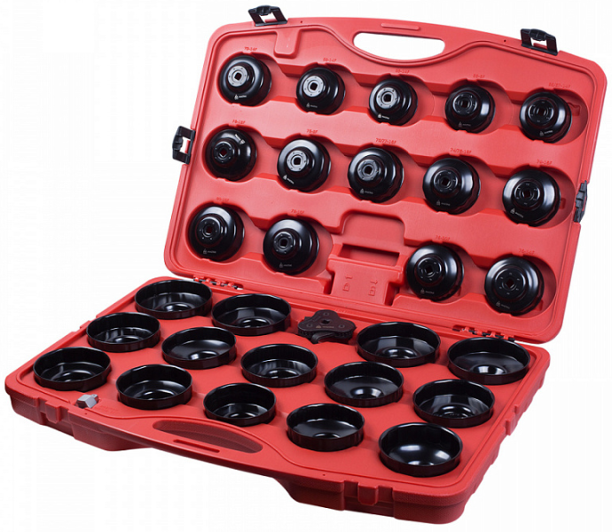Набор съёмников масляных фильтров из 30 предметов в кейсе Мастак 103-40030C, предназначен для снятия или установки масляных фильтров двигателей автомобилей. Подходит к фильтрам как оригинальных по марке авто, так и не оригинальных производителей.