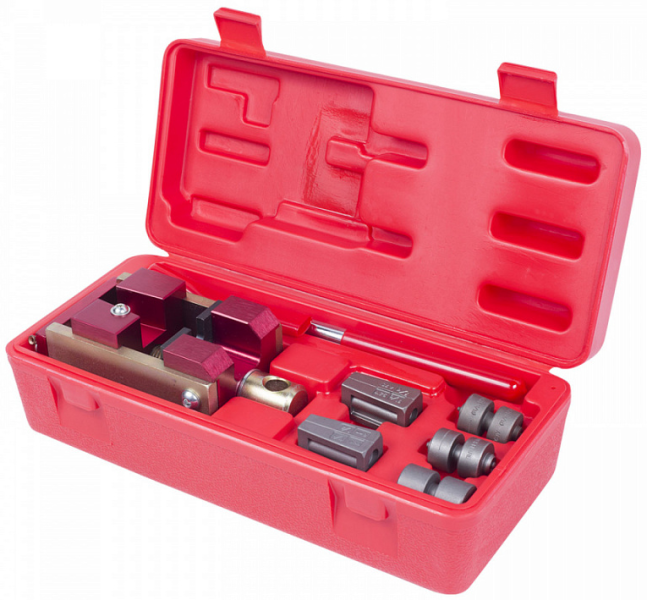 Приспособление Мастак 102-10046C в пластиковом кейсе из 7 предметов, предназначен для развальцовки трубок тормозной системы автомобиля.