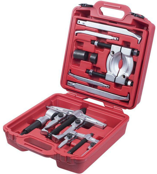 Съемник подшипников 2-х захватный, сегментного типа Мастак 104-12030C в кейсе из 14 предметов, предназначен для демонтажа подшипников, шкивов и прочих деталей, запрессованных в обойму или установленных на вал.