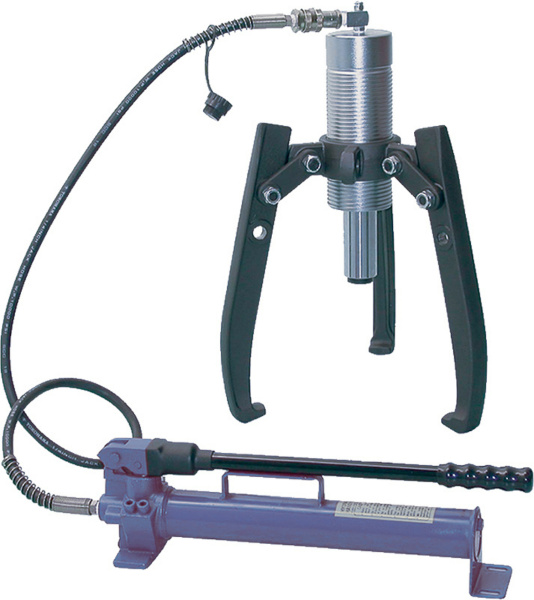 Комплектация набора: Насос гидравлический / Шланг 1,5 метра / Цилиндр гидравлический 30 тонн / Съемник 3-х захватный / Металлический бокс.