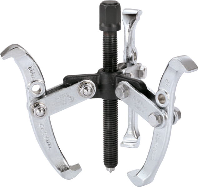 Универсальный съемник Hans 5323-06 с тремя поворотными захватами за счет дополнительного захвата, в отличии от съемника с двумя захватами, позволяющий более равномерно распределять нагрузки на демонтируемую деталь и, соответственно, прилагать большее усилие.