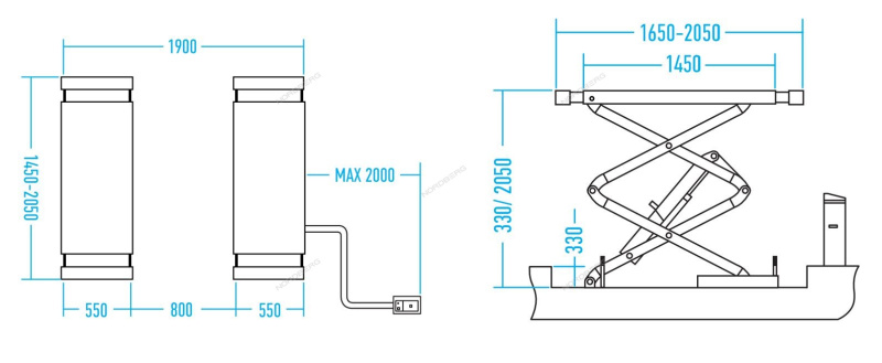- Ширина подъемника 1900 мм.