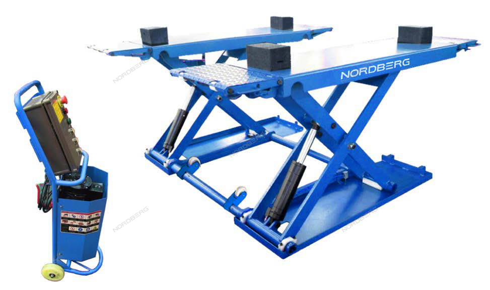 Ножничный электрогидравлический подъемник Nordberg N632-3B_380V с напольной установкой, подходит для проведения шиномонтажных работ и для зоны приемки.