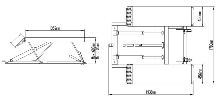 - Габаритные размеры подъемника ДхШ 1938х1780 мм.