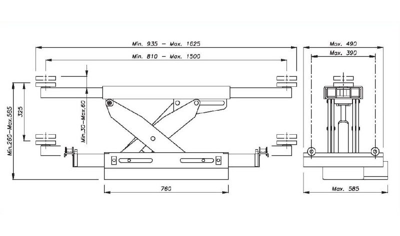 Траверса ножничная пневмо-гидравлическая OMA 543A.05 предназначена для использования на подъемниках и ямах.