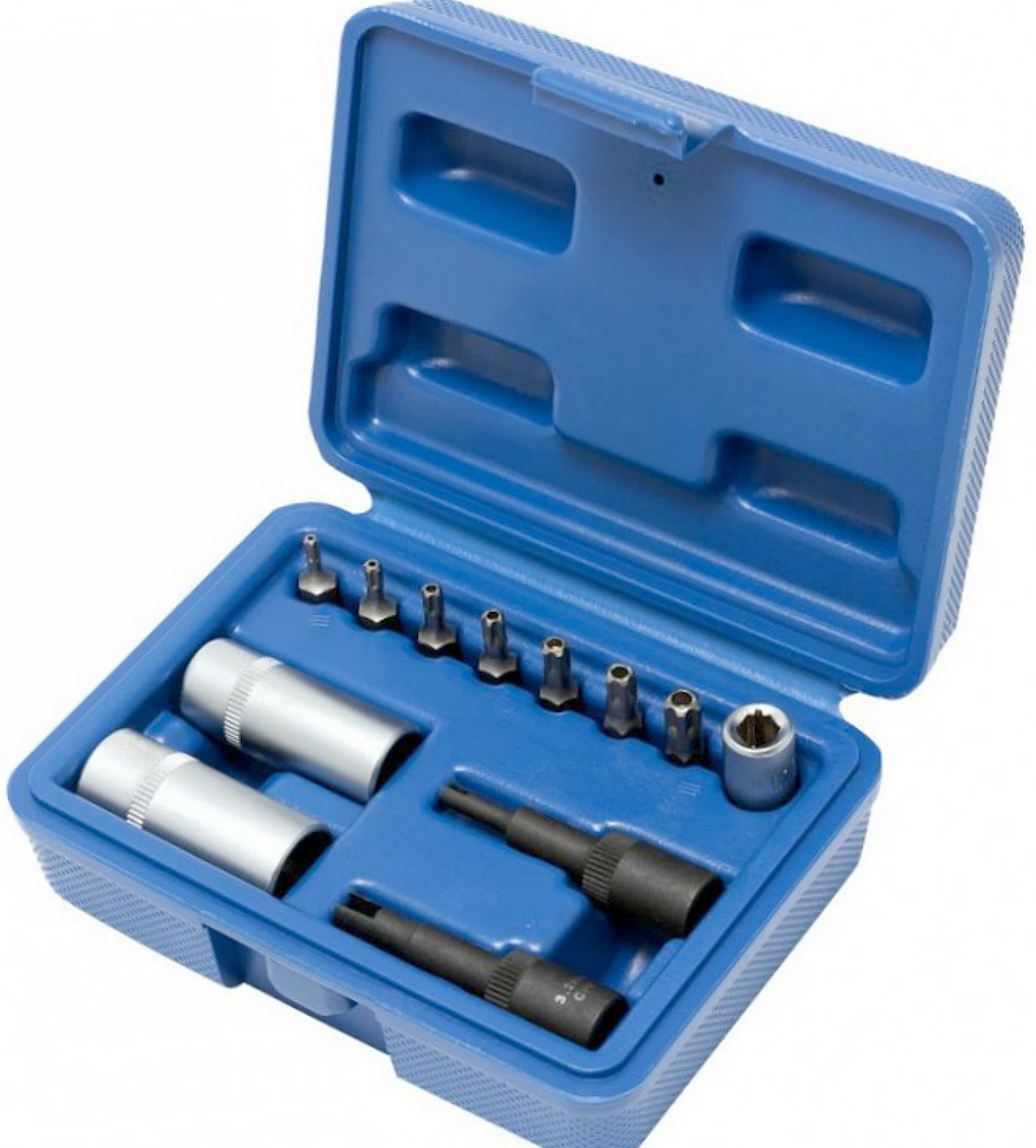 Набор головок и бит Forsage F-4061112 в пластиковом кейсе из 12 предметов предназначен для обслуживания автомобильных кондиционеров.